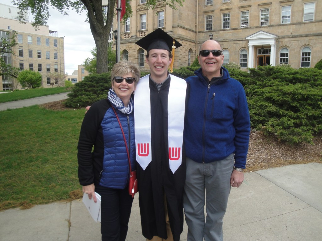 Body: I look GREAT, but my parents are photobombing this picture…Please edit my parents and put in a Badger Red background so I can use this as my professional headshot!