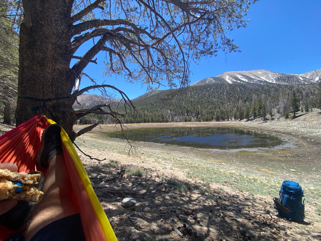Day 1: ~9-miles to Mineshaft Flats camp area after a great hammock lunch at Dry Lake. Incredible stars and glow from the city below.